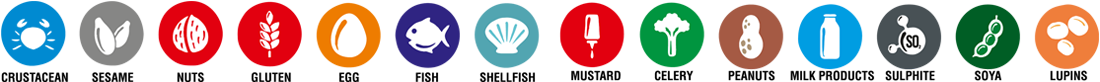 If you suffer from allergies, please enquire when ordering. Our dishes may contain: Gluten, Nuts, Milk, Peanuts, Soya, Mustard, Sesame seeds, Lupin, Egg, Crustaceans, Celery, Fish / Fish bone, Molluscs, Sulphur Dioxide. Above Allergens mentioned may be present in any of our dishes. Customers with any allergies, eat at their own risk.